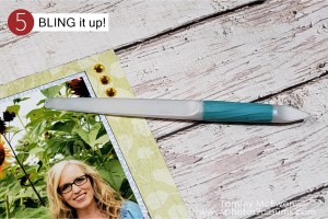 5) Bling it up! I LOVE using the CM Gems & Pearls on an album page. If you find them bit tricky to use, use your Multi-Purpose Tool (a MUST have!) to help take them off the backing sheet and apply to the layout.