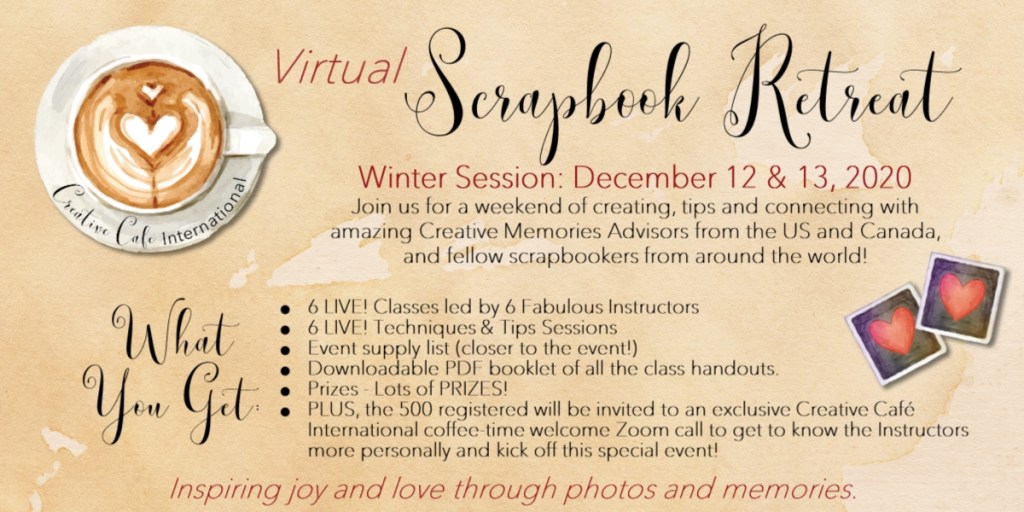 I am so thrilled to have teamed up with 5 amazingly talented Advisors from the US to bring to you the Creative Cafe International Virtual Scrapbook Retreat – Winter 2020!