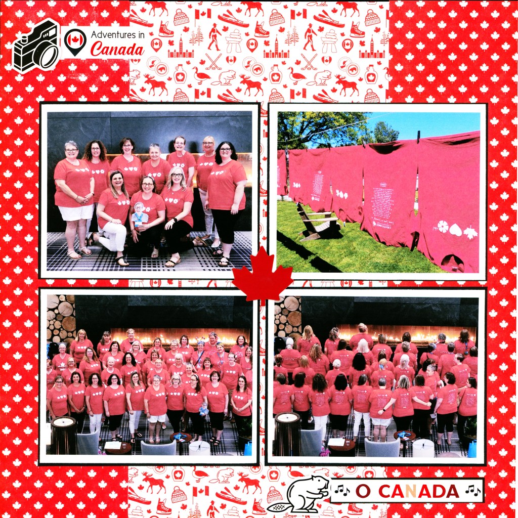 Here’s my completed layout featuring photos of our “Canada Loves Creative Memories” T-shirts!