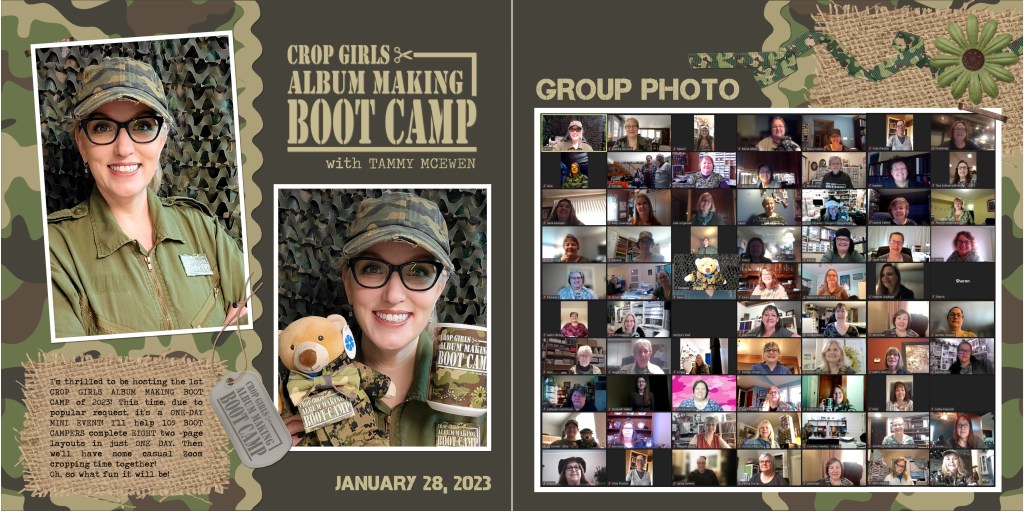 The ‘Original Crop Girls’ BOOT CAMP Album Making Workshop is back – virtually! Come ready to work on your scrapbooks during this structured step-by-step event to organize and complete 15+ double page layouts in one weekend – then enjoy a couple of days to put the finishing touches on your pages, create more or catch up if you missed something before you submit them for the challenge draws!